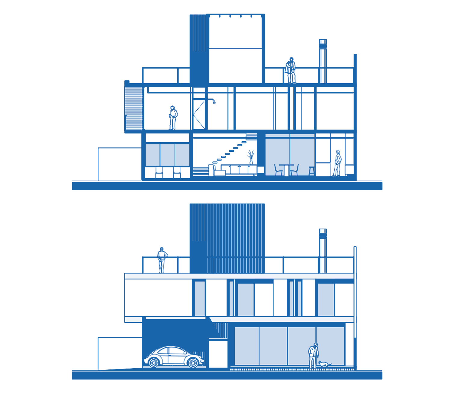O vazio é a matéria prima do espaço, seja ele interior ou exterior. Ao articular o dentro e o fora, a casa ganha em amplitude e riqueza espaciais. Por isso, decidimos ocupar o terreno com uma construção de 240m², e fazer das sobras – o vazio – um jardim ensolarado: um verdadeiro quintal, para que possa ser aproveitado com vida.