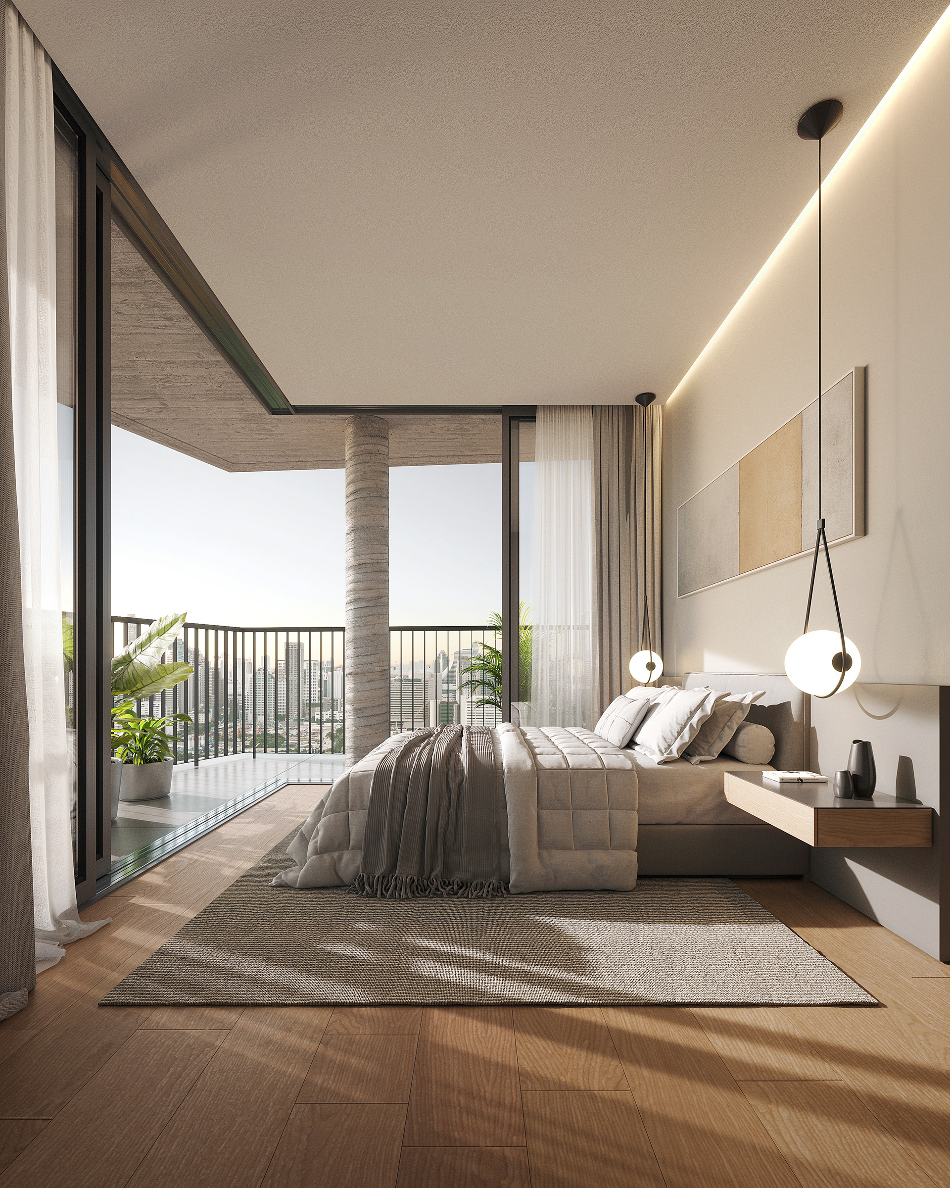 Apartamentos diversos e flexíveis são propostos para todos através de uma variedade de tipologias por pavimento, com unidades tipo gardens e duplex na cobertura.